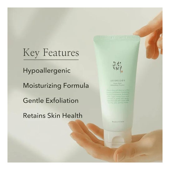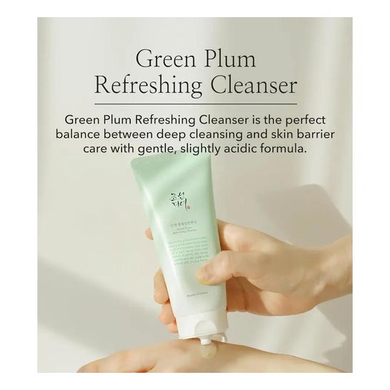 Beauty of Joseon Green Plum Refreshing Cleanser 100ml é um limpador facial de baixo pH que limpa suavemente sem danificar ou irritar a barreira cutânea.