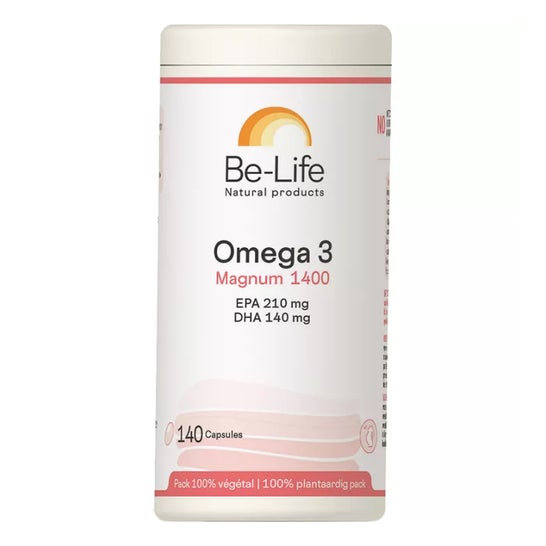 Omega 3 Magnum 1400 da Be-Life é um suplemento alimentar com um elevado teor de ómega 3 (EPA e DHA) e ajuda a manter uma função cardíaca normal e uma função cerebral saudável. O DHA também ajuda a manter uma boa visão, a circulação sanguínea e níveis normais de colesterol. O óleo de peixe deste produto provém de peixes selvagens capturados de forma sustentável. Não contém OGM ou metais pesados.