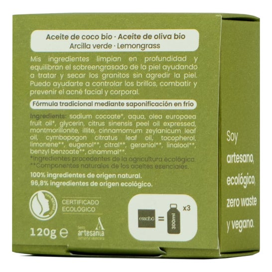 Sabonete sólido orgânico feito à mão, com o certificado verde que garante que é feito com produtos naturais e orgânicos. Contém uma base de óleo de coco das Filipinas e azeite espanhol, enriquecida com manteiga de cacau do Brasil e óleo de jojoba da Argentina. Tem propriedades nutritivas, regeneradoras e antioxidantes para deixar a pele radiante e cuidada.