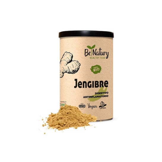 BeNatury Pó de Gengibre 125 gr é um suplemento em pó elaborado à base de gengibre. O seu caule desenvolve-se principalmente debaixo da terra, onde pode atingir até 90 cm de comprimento. Graças ao seu característico aroma e sabor picante, é muito popular na comida asiática e atua como digestivo. Além disso, tem um alto conteúdo em proteínas e vitamina C e também é utilizado como tónico vigorante, expectorante e para prevenir tonturas.