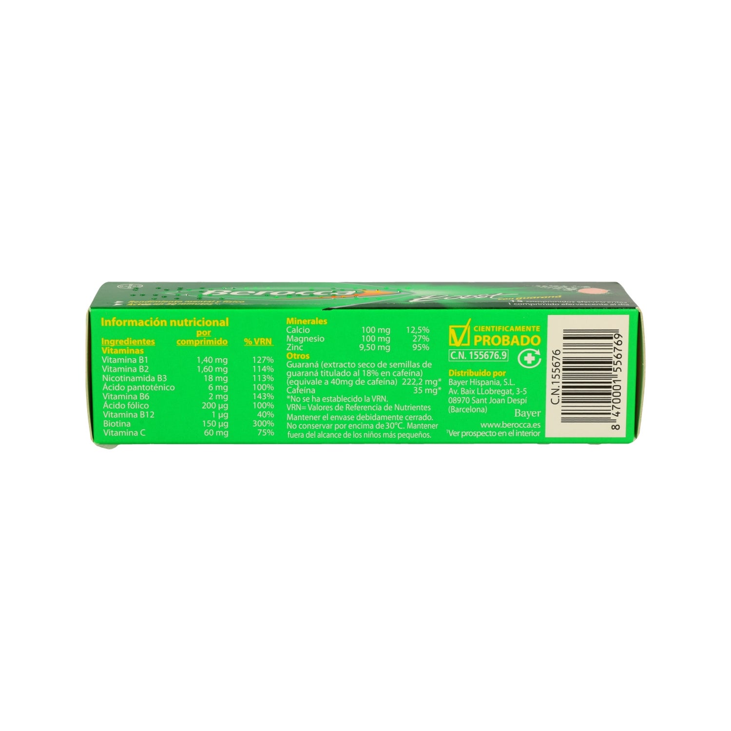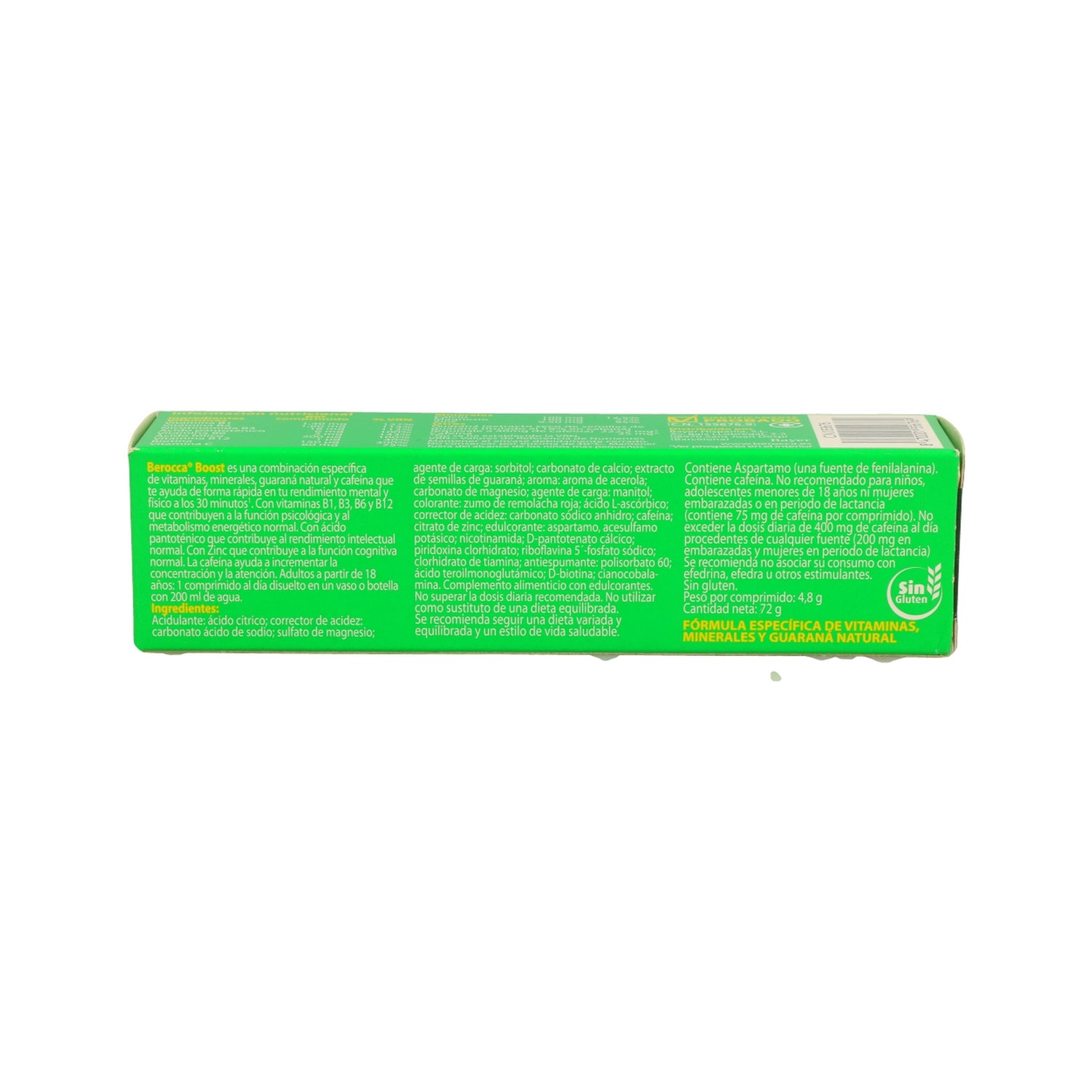 Berocca® Boost efervescent 15 tabs é um suplemento alimentar efervescente com sabor a cereja.
