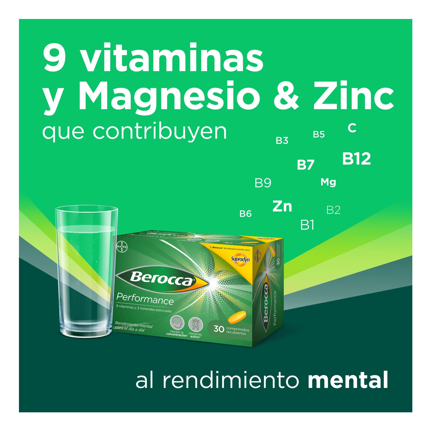 Berocca® Performance 30comp é um suplemento alimentar formulado com minerais e vitaminas B e C, que contribuem para o desempenho físico e mental.