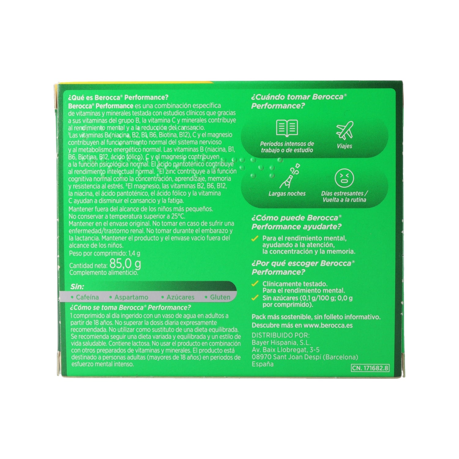 Berocca® Performance 60comp é um suplemento alimentar que combina vitaminas do complexo B, vitamina C e minerais essenciais como o magnésio e o zinco.