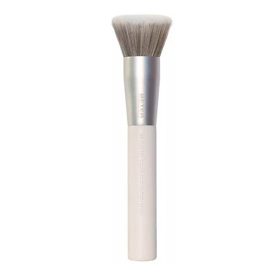 Pincel de cerdas suaves que favorece a aplicação da maquiagem de maneira fluida e homogênea, sem deixar grumos nem sombras.