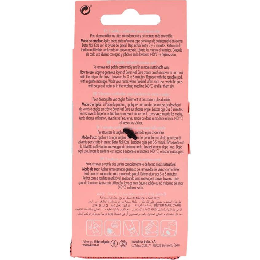 Beter Toalhetes Removedores Reutilizáveis é um produto projetado para facilitar a remoção do esmalte de unhas. Estes toalhetes são confeccionados com um tecido especial que permite retirar o esmalte de maneira eficiente.