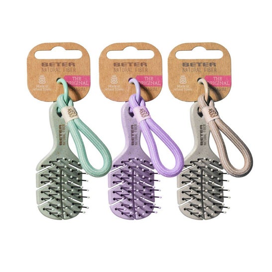Beter Natural Fiber Mini Brush Charm 1 ud é uma escova desembaraçadora mini para o cuidado diário do cabelo, pensada para levar a qualquer lugar. Desembaraça suavemente e ajuda a reduzir a quebra, tanto em cabelo úmido quanto seco, especialmente em cabelos finos e frágeis.