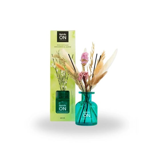 Betres On Mikado Decorativo Bergamota & Jasmim 100 ml é um difusor pensado para perfumar e decorar o lar com uma fragrância fresca e natural. Combina a vitalidade cítrica da bergamota com a suavidade floral do jasmim. Oferece uma difusão contínua durante mais de quatro semanas.