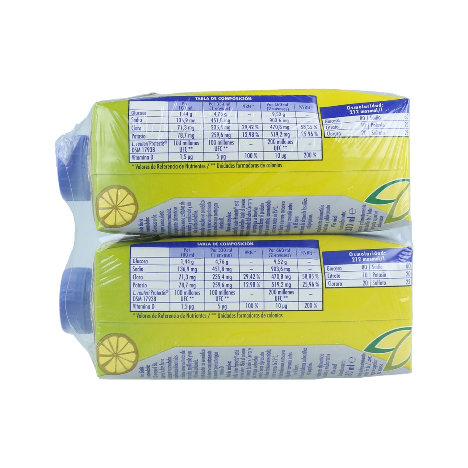 Bi-oralsuero Plus 2x330ml é uma bebida reidratada à base de sais minerais com lactobacillus reuteri protectis.