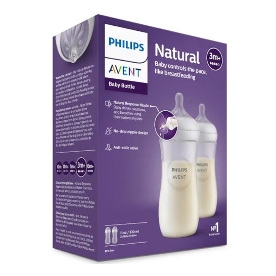 Embalagem Avent Natural Bottle Pack 2x330ml. *A cor e o design do produto podem variar dependendo da disponibilidade.