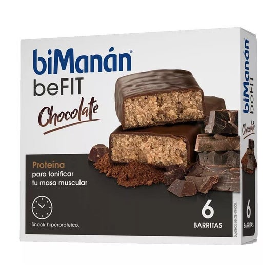 Bimanan Pro Barrita Chocolate 6 unidades são barras de dieta com sabor a chocolate concebidas para dietas proteicas .