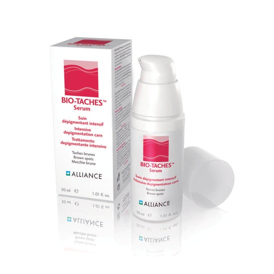 O sérum Bio-Taches® é um tratamento intensivo de despigmentação, adequado para todos os tipos de pele (incluindo pele sensível) com manchas escuras. A combinação de arbutina, alfa-hidroxiácidos, polifenóis e flavonóides reduzem o excesso de melanina nestas áreas escuras e clarificam-nas.