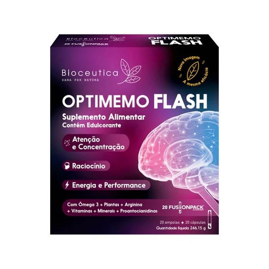 Bioceutica Optimemo Flash é um suplemento alimentar projetado para potencializar a memória e a concentração. Sua fórmula atua de maneira rápida, favorecendo a atenção e o raciocínio ágil. Este produto não só melhora o desempenho cerebral, mas também protege o cérebro e o sistema nervoso central dos efeitos do estresse cotidiano.