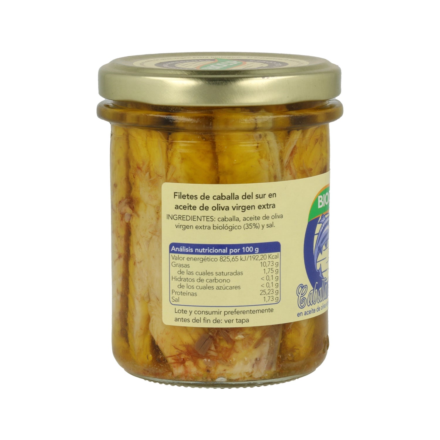 Pensando em produtos alimentares de origem animal como o peixe, a Biocop desenvolveu o filete de cavala em azeite virgem extra biológico. Este é um alimento com um sabor e consistência agradáveis. Possui níveis nutricionais elevados que, quando consumidos regularmente, são uma fonte de proteínas e fornecem vitaminas A, B, E, D e minerais como potássio, iodo, fósforo, magnésio e ferro. A cavala é caracterizada por ser um peixe azul de água salgada, que contém ácidos gordos como o Omega-3, que ajuda a proteger o sistema cardiovascular e a reduzir a presença de triglicéridos no sangue. Também fortalece o cérebro e melhora o sistema imunológico. Apresentação de 195 g. Produto natural proveniente da pesca extrativa. Contém sal marinha. Depois de aberto, conservar refrigerado.