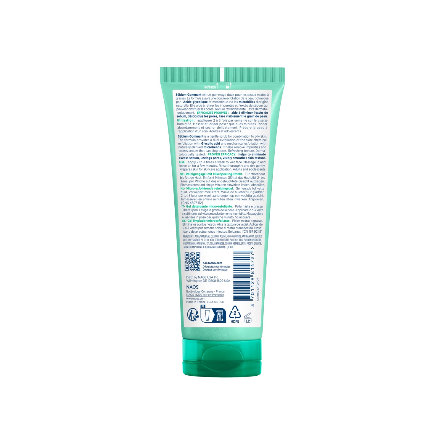 Seu efeito esfoliante contribui para melhorar a textura do rosto e mantê-lo livre de obstruções, proporcionando um aspecto mais luminoso e uniforme.