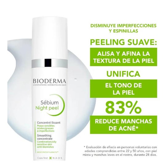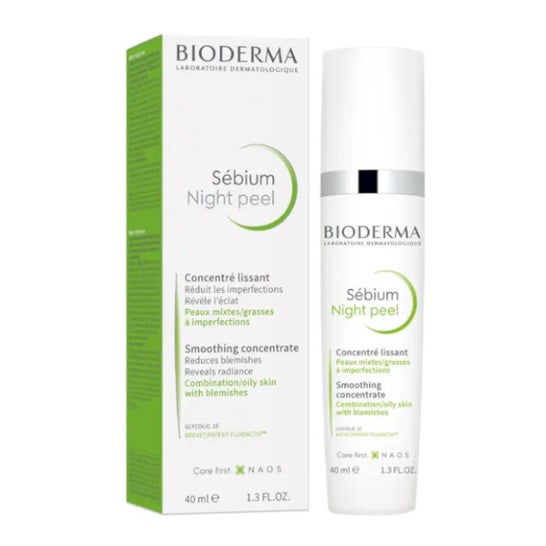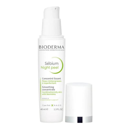 Bioderma Sébium Night Peel 40ml é um gel concentrado concebido para hidratar e regenerar a pele durante uma noite de descanso. Ajuda a criar uma aparência mais suave e clara na pele mista, como a pele oleosa. Ajuda a minimizar a hiperpigmentação e a revelar um tom uniforme e luminoso. Tem propriedades equilibrantes, uma vez que actua no controlo do excesso de brilho da pele. Formulado com 15% de ácido glicólico, altamente tolerado pela pele, ajuda a revitalizar e a esfoliar. Promove a melhoria dos poros dilatados para um efeito mais fino. Com Fluidactiv™ e D-Pantenol, que ajudam a hidratar a pele em profundidade. Não comedogénico. Testado dermatologicamente. Indicado para peles normais, mistas e oleosas.
