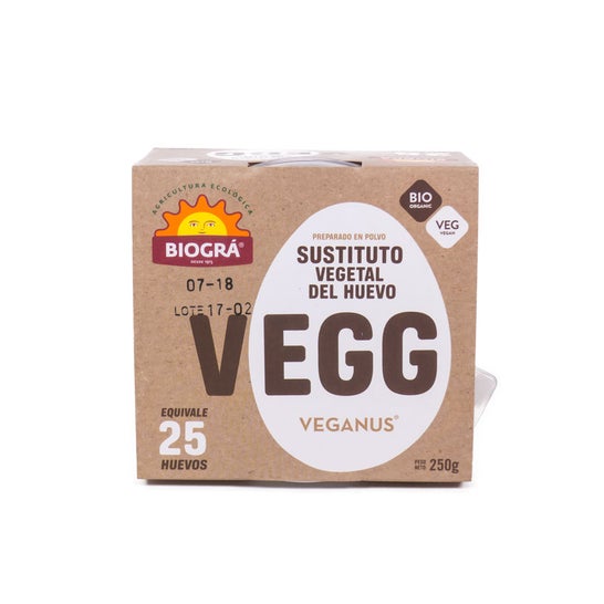 Farinha de grão-de-bico e amido de milho da marca Biográ. Ideal para preparar omeletes, maionese, molhos, massas. Também pode ser utilizada como ingrediente em receitas de pastelaria. Destina-se a ser consumido por pessoas alérgicas aos componentes do ovo. Também para quem sofre de colesterol, para quem é vegan ou vegetariano e para quem segue uma dieta rigorosa à base de alimentos biológicos. A farinha de grão-de-bico é rica em hidratos de carbono. Estes são absorvidos lentamente, o que torna este produto perfeito para os diabéticos que precisam de vigiar os seus níveis de glucose. É uma fonte rica de proteínas e de minerais como o cálcio, o magnésio, o zinco e o fósforo. É fácil de preparar. Não contém lactose nem conservantes. O seu conteúdo de 250 gramas é equivalente a 25 ovos.