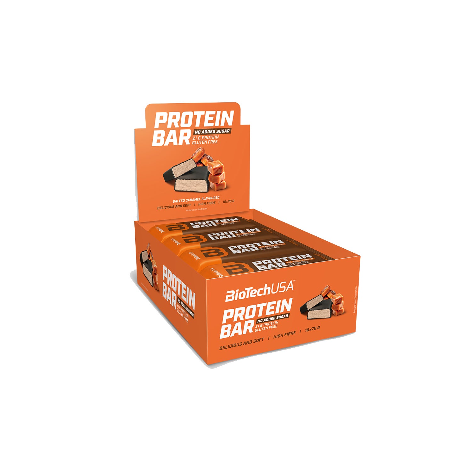 BioTech USA Protein Bar Caramelo Salgado 16x70g é uma barrinha de proteínas projetada para oferecer um alto teor proteico, com 11 gramas de proteína por unidade, incluindo proteína do soro e colágeno. Este produto se destaca pelo seu baixo teor de açúcares, o que a torna uma opção recomendável para quem pratica esportes e busca manter um corpo atlético. Também pode ser uma alternativa adequada para aqueles que seguem um regime alimentar e desejam controlar sua ingestão calórica.