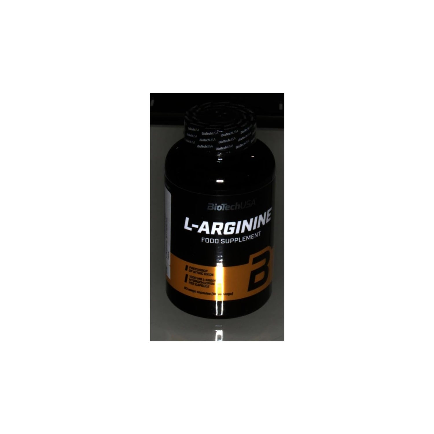 um suplemento alimentar em cápsulas sem sabor da Biotech USA que contém um suplemento de L-Arginina, que é um aminoácido que actua como precursor do óxido nítrico, uma substância que promove a vasodilatação e ajuda a retardar o início da fadiga durante a actividade física.
