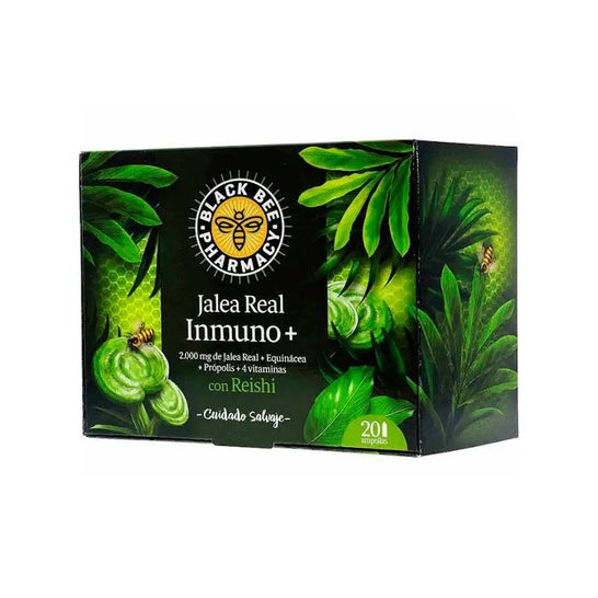 Black Bee Inmuno 2x20frascos é um suplemento alimentar à base de geleia real, própolis, reishi e vitaminas que ajuda a reforçar as defesas do organismo. Contém 2 caixas de 20 frascos cada.
