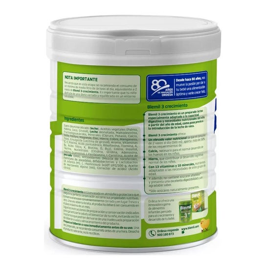 Ajuda a favorecer seu crescimento e o controle de sua flora intestinal. A fórmula de Blemil® Plus 3 crescimento está enriquecida com nucleotídeos, frutooligossacarídeos, lactobacilos e bifidobactérias.