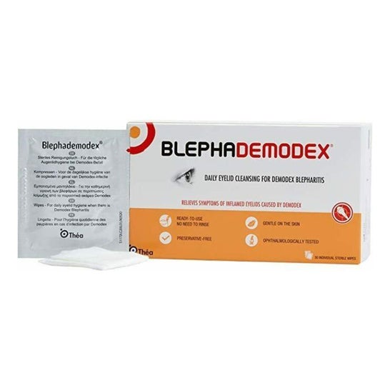 Blephademodex Compr St Nettoy B/30 da THEA FARMA SPA é uma solução avançada para a higiene diária das pálpebras, especialmente projetada para olhos com sintomas de blefarite associada a Demodex. Facilita uma limpeza profunda e alivia a inflamação nas pálpebras e cílios, oferecendo frescor e conforto desde o primeiro uso.