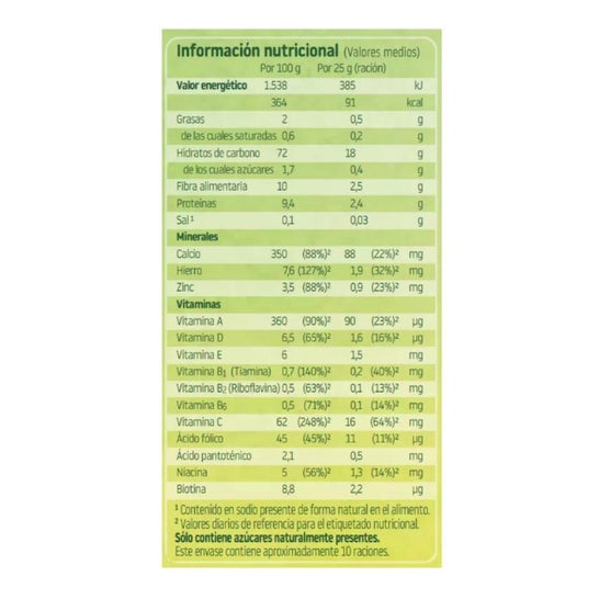 Com 14 vitaminas, cálcio, ferro e zinco.