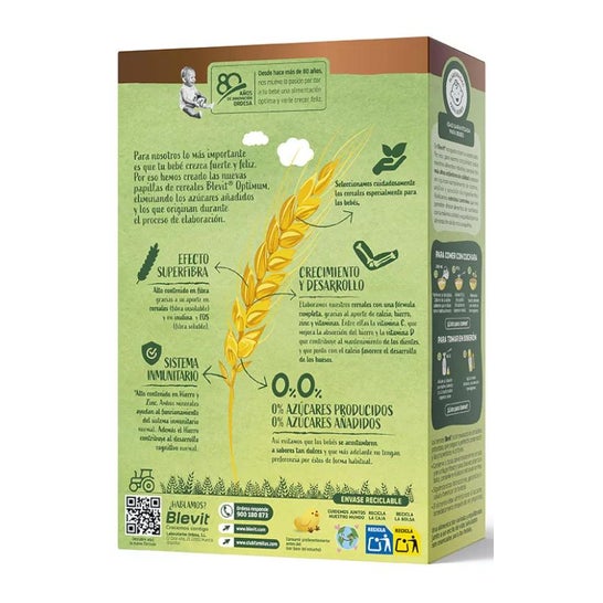 Blevit® Optimum 8 Cereais 250g é uma papinha elaborada com cereais indicada para bebês a partir de 5 meses.