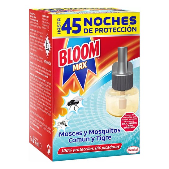Bloom Max Moscas & Mosquitos Rec. Líquido eléctrico 18ml é uma recarga para o aparelho eléctrico que ajuda a eliminar os mosquitos
