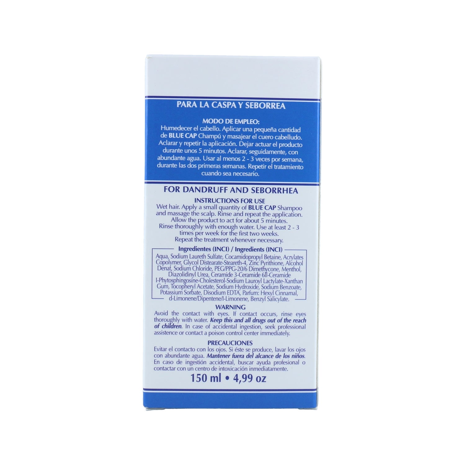 Champô indicado para o tratamento do couro cabeludo afectado pela caspa, seborreia seca ou seborreia oleosa. Ajuda a reduzir a comichão e a descamação, e também promove o crescimento do cabelo. Pode ser complementada com Blue Cap Lotion para seborreia seca, utilização mista de loção e champô. E, para a seborreia oleosa, a aplicação do champô é suficiente.