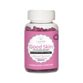 Lashilé Beauty Good Skin Sem Açúcar 60 gomas é um complemento alimentar com sabor a morango que contribui para manter uma pele mais saudável e radiante.