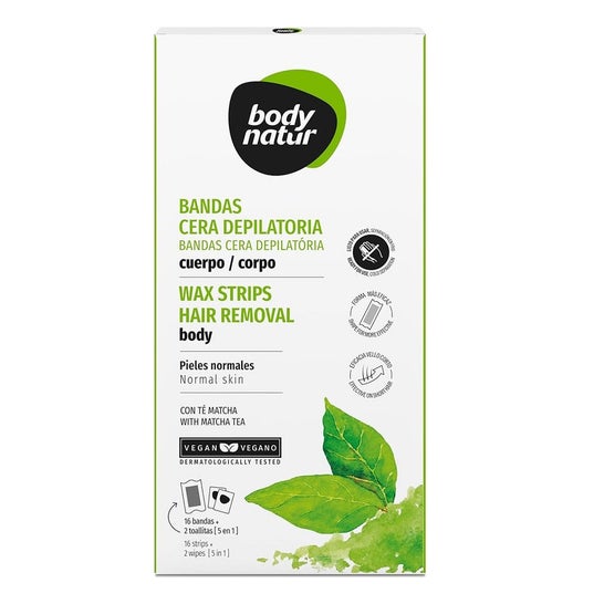 Body Natur Tiras Cera Depilatória Corpo Chá Matcha 16 Unidades