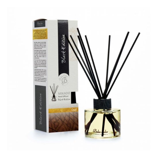 Ambientador doméstico em formato mikado, contendo um aroma suave e agradável de madeira e doce, ideal para perfumar qualquer sala fechada. Contém notas de topo de cardamomo, rosa selvagem e pimenta, notas de coração de sândalo, vetiver, cade, oud e fumo e notas de base de âmbar, baunilha e almíscar. Os paus de rotim naturais ajudam a distribuir uniformemente a fragrância. Duração aprox. 10 semanas.