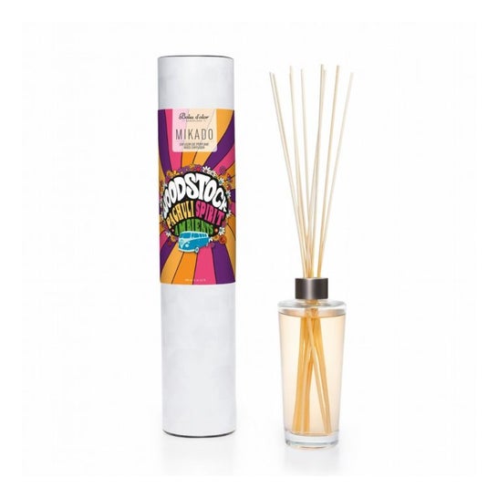 Ambientador para o lar em formato mikado, que contém uma delicada e agradável fragrância amadeirada e floral, ideal para perfumar qualquer ambiente fechado.