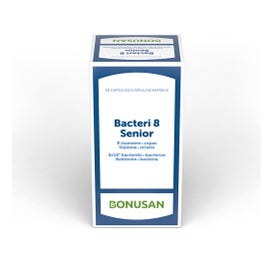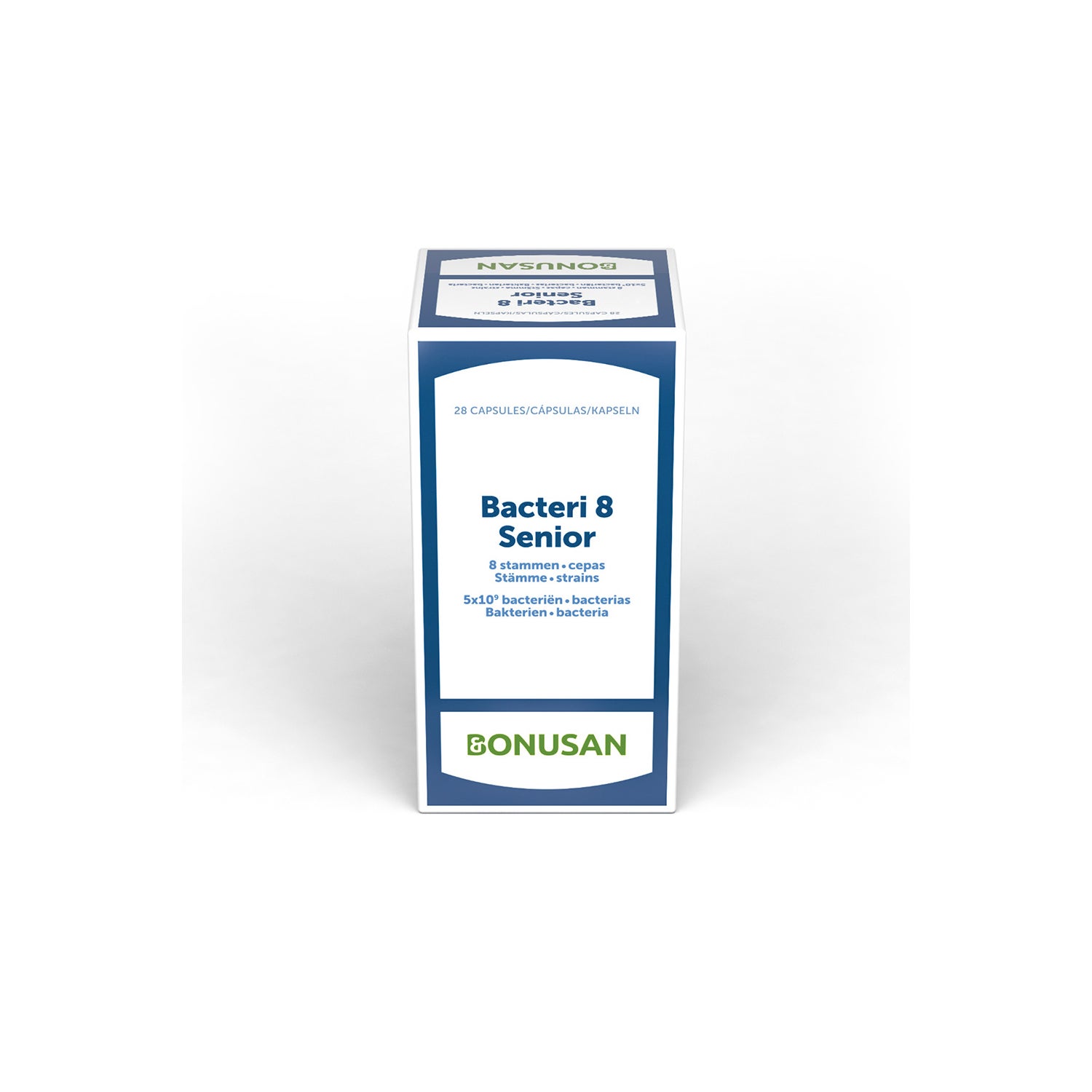 Bonusan Bacteri 8 Senior 28caps é um complemento alimentar com 8 cepas bacterianas especialmente formulado para pessoas idosas.