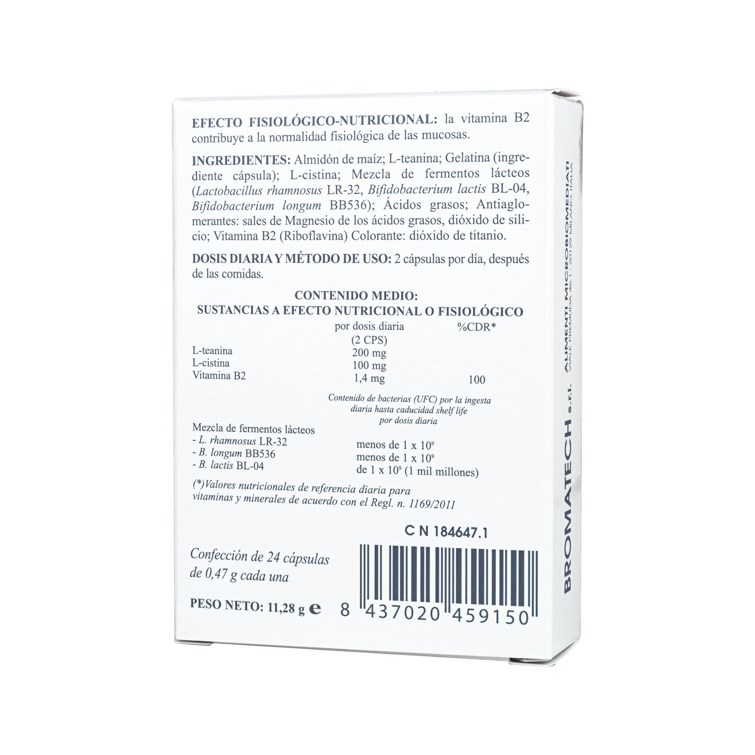 Suplemento alimentar em cápsulas, à base de L-teanina, L-cisteína, vitamina B2 e fermentos lácticos, que ajudam a proteger a integridade da barreira intestinal. Ajuda a controlar a fuga de citocinas indesejáveis para órgãos como o cérebro, o tecido adiposo e o sistema cardiovascular.
