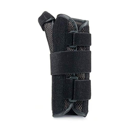 Pulsoeira projetada para favorecer a recuperação pós-operatória ou em caso de lesões nos tendões, entorses, artrite, artrose e síndrome do túnel do carpo, entre outros. Possui dois estabilizadores de alumínio que são moldáveis de acordo com os ajustes necessários e fechos de velcro para manter o pulso imóvel. Para pulso direito.