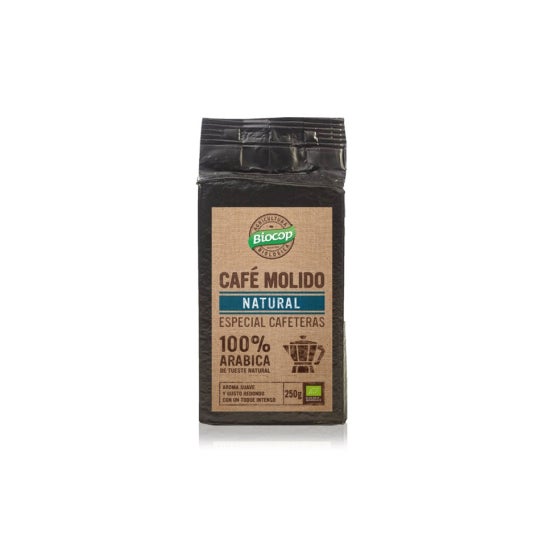 Café arábica moído da marca Biocop. Os seus grãos foram perfeitamente torrados e moídos para alcançar a consistência ideal que favoreça a preparação do café. Apresenta-se numa embalagem selada a vácuo que contém 250 gramas. Este café de origem biológica tem calorias suficientes para que o corpo possa realizar as suas atividades. É solúvel e não contém substâncias que causem danos ao sistema nervoso. Com um aroma agradável e sabor intenso que cria um equilíbrio entre prazer e saúde. Recomenda-se para pessoas que desejam um café que não afete o seu sono nem o seu estado de espírito. Pode ser consumido com água ou misturado com leite sem problemas. É preferível armazenar este café ecológico num local fresco e seco, a fim de manter as suas propriedades em perfeito estado.