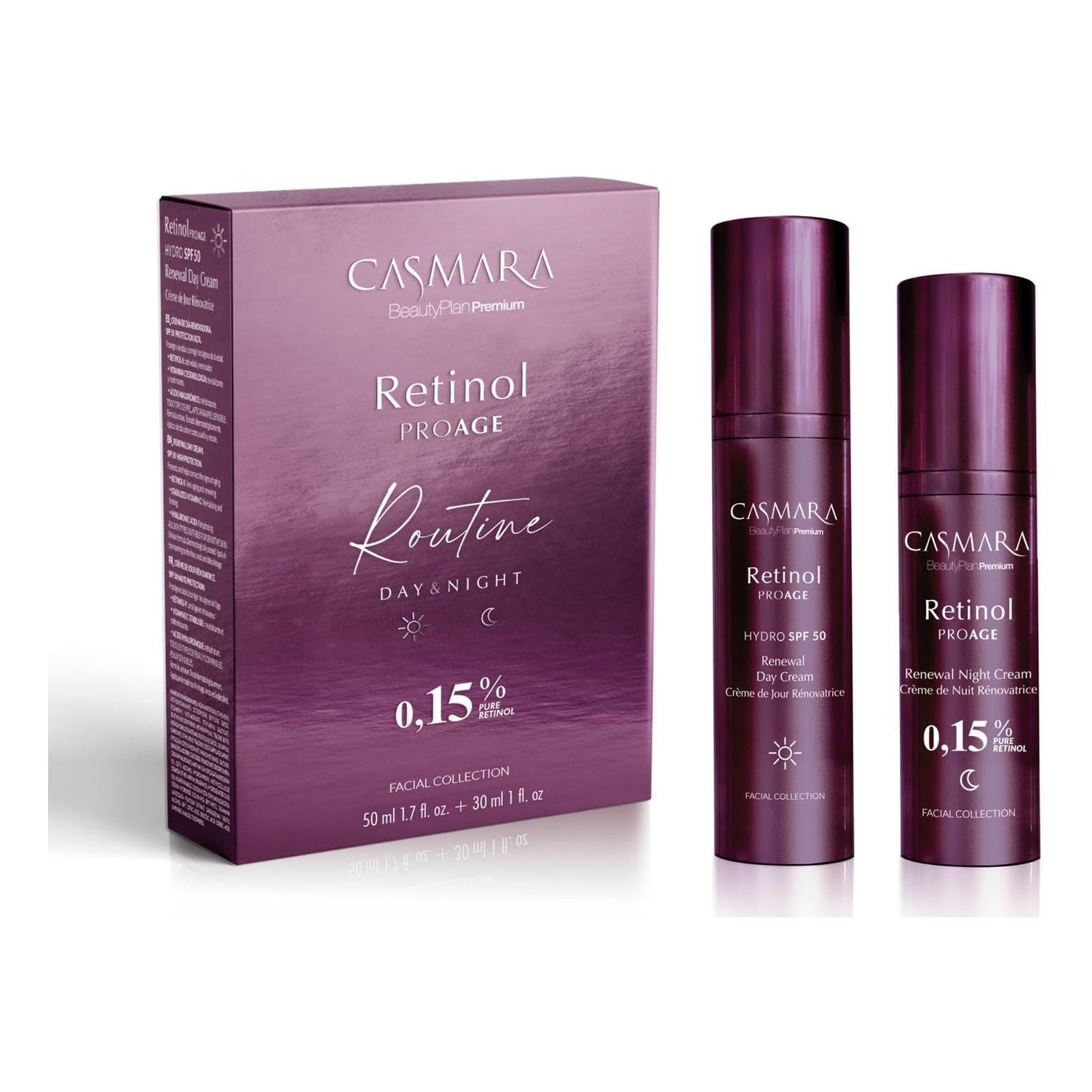 Casmara Pack Retinol ProAge Routine Dia & Noite 0,15% 50ml + 30ml é um conjunto projetado para oferecer uma rotina intensiva de rejuvenescimento. Este pack inclui: