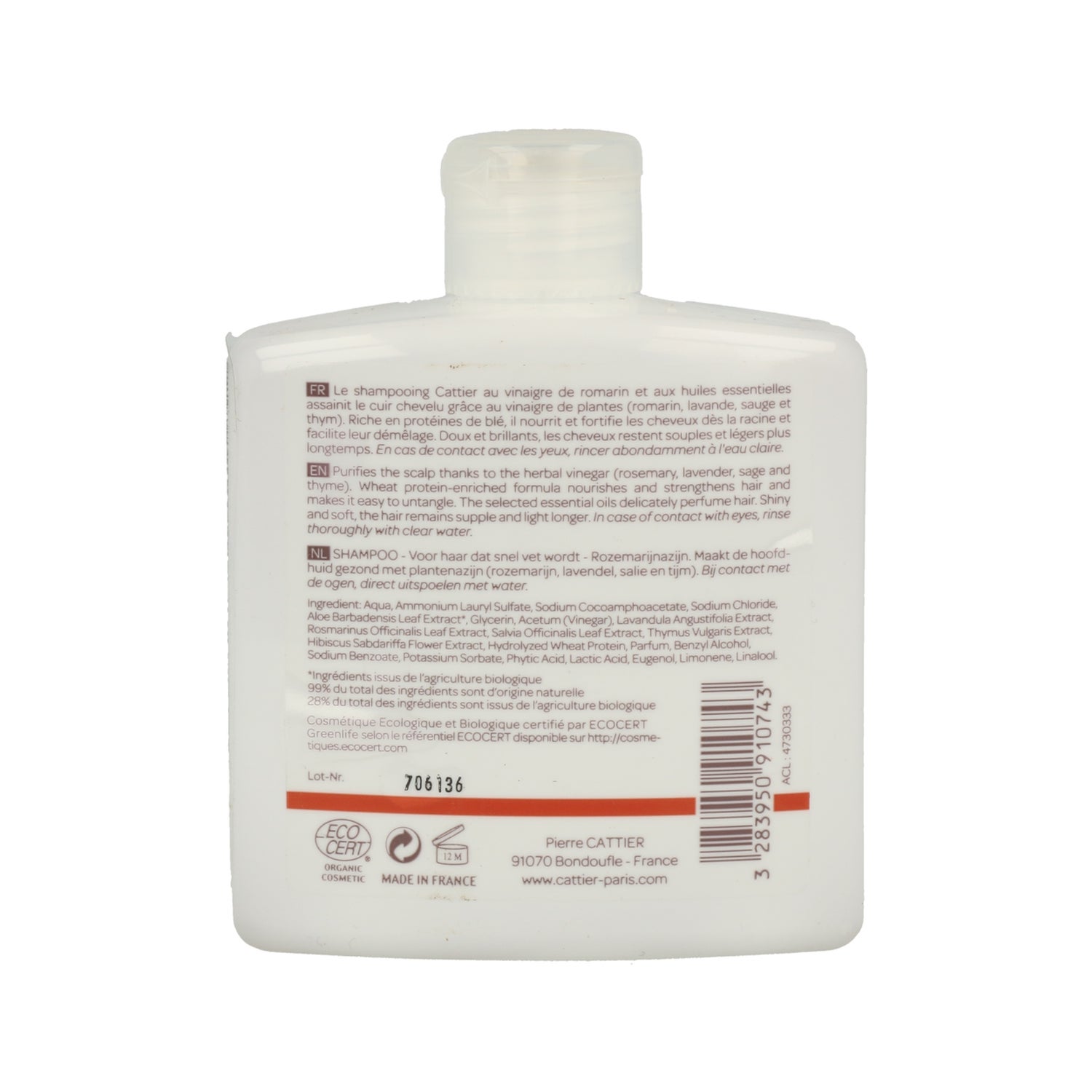 OChampô Vinagre de Alecrim Cattier 250ml é um champô para o tratamento de cabelos oleosos à base de alecrim. É rico em proteína de trigo que ajuda a nutrir e fortalecer o couro cabeludo. Limpa eficazmente o cabelo.