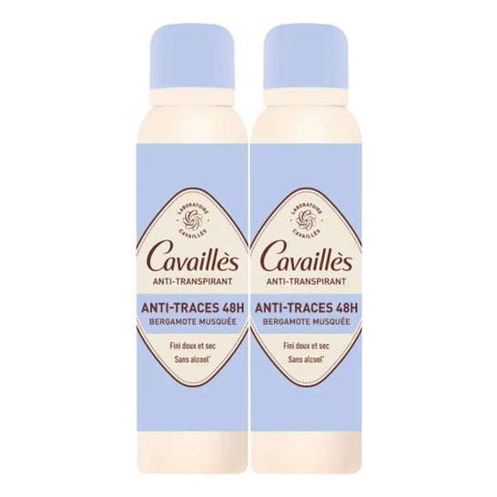 Cavaillès Desodorante Antitranspirante Anti-Marcas 48h Bergamota Spray 2x150 ml regula até a transpiração mais intensa durante 48 horas.