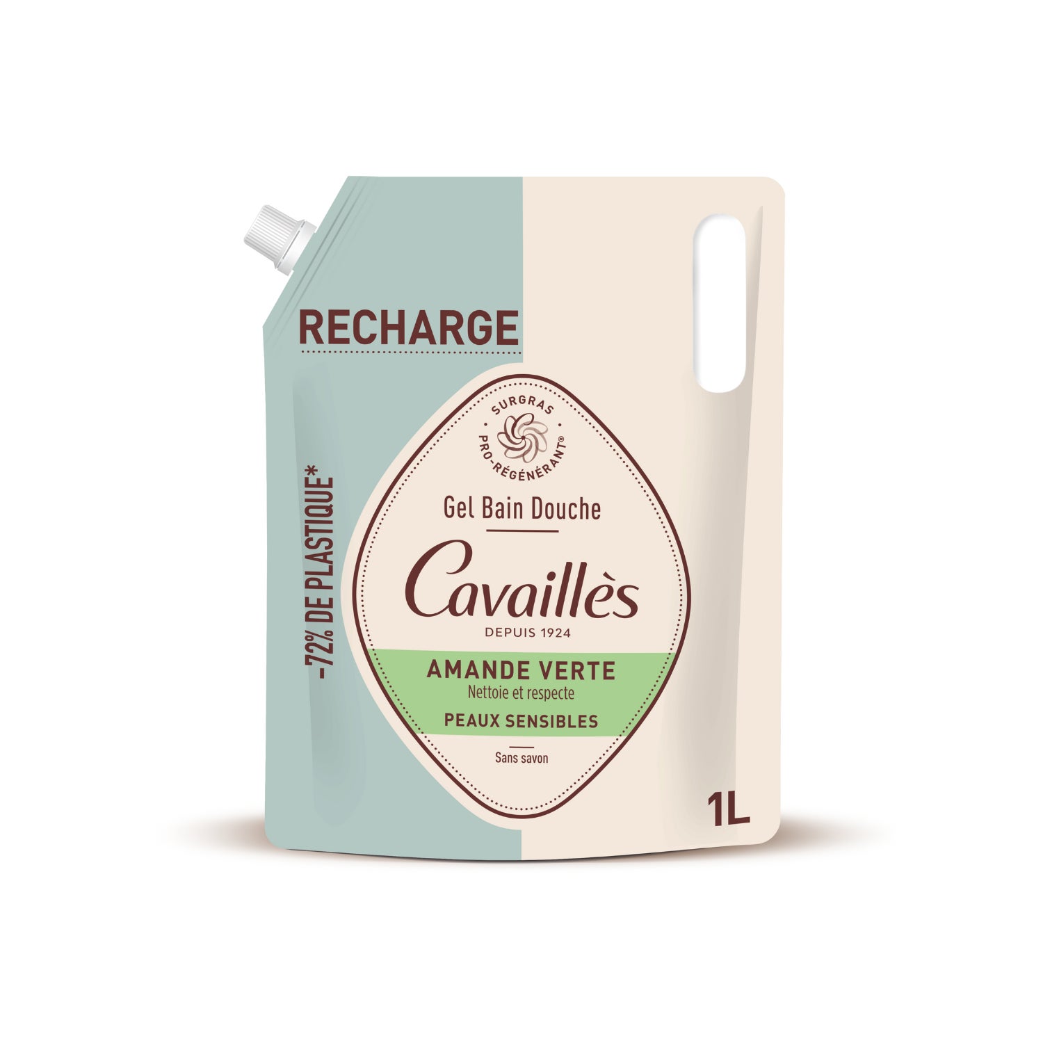Cavailles Gel de Duche Amêndoa Verde Eco Refil 1000 ml é um produto projetado para o cuidado da pele de toda a família, adequado para pessoas a partir de 3 anos. Sua fórmula, enriquecida com surgras vegetal pro-regenerante, permite uma limpeza suave e respeitosa, preservando o processo natural de regeneração da pele.