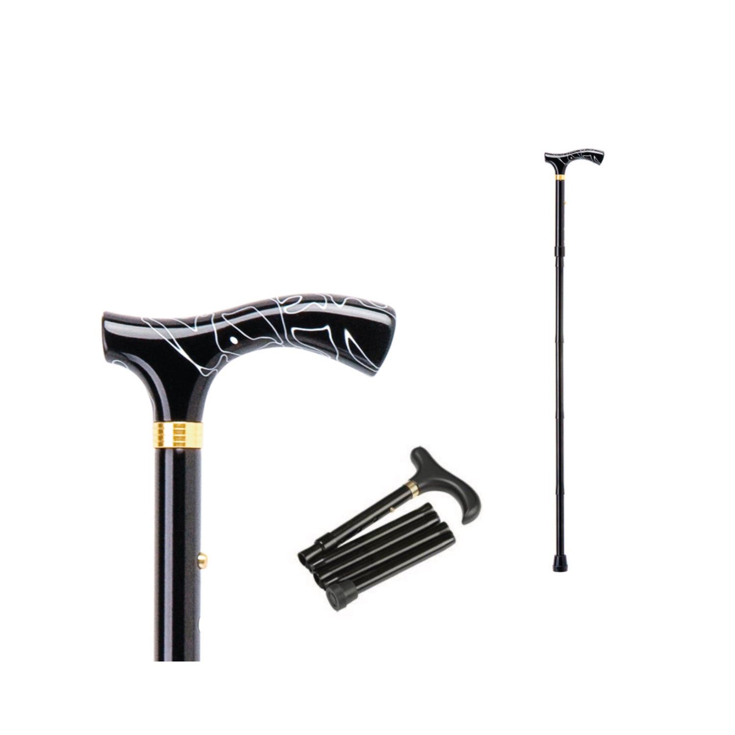 Bastão com cabo de alumínio dobrável que ajuda pessoas com mobilidade reduzida. Seu formato é ajustável com cabo regulável à altura necessária (82-90cm).