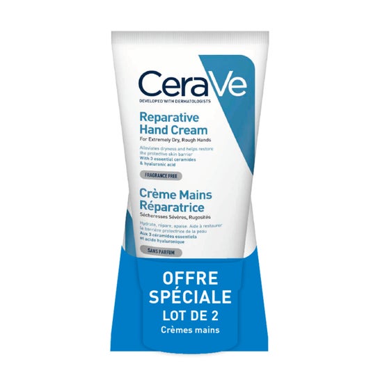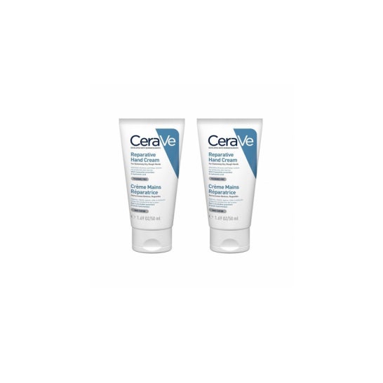 Cerave ® Crème Mains 2x50 ml é um creme para as mãos que ajuda a reparar a pele seca e irregular. É formulado com três ceramidas essenciais que ajudam a restaurar a barreira protetora da pele. Contém 2 embalagens de 50ml cada.