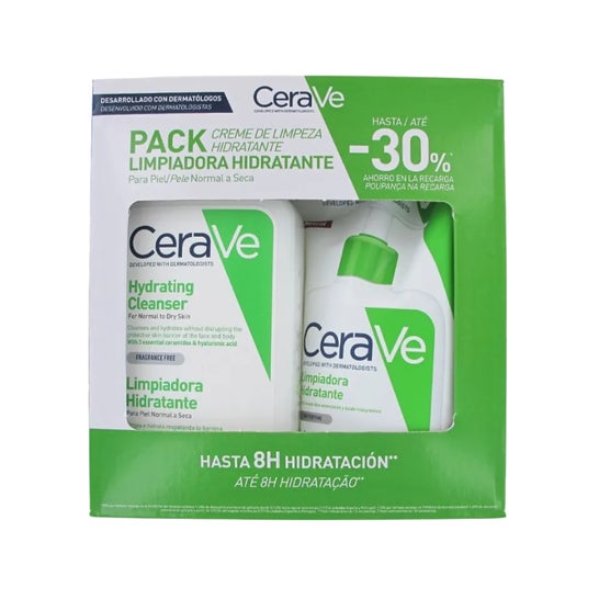 Cerave Limpiador Hidratante 473 ml + Recarga 473 ml é um pack duplo para a limpeza diária da pele normal a seca. Inclui o limpador hidratante de 473 ml e uma recarga de 473 ml, pensados para manter uma hidratação continuada.