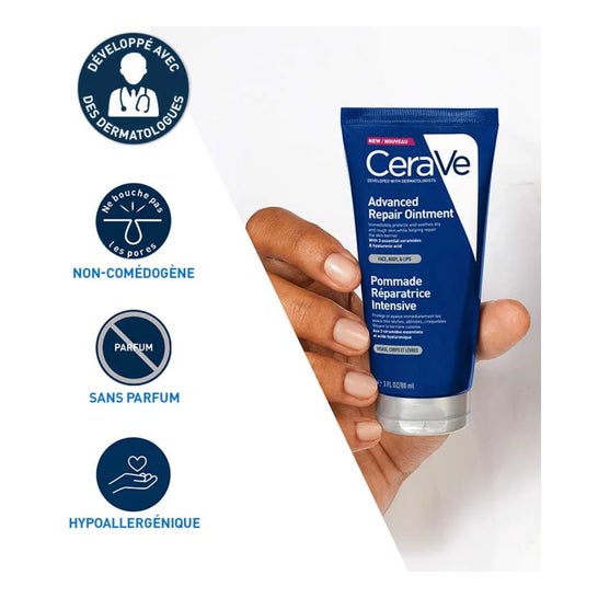 CeraVe® Pomada Reparadora Intensiva 88ml é um tratamento reparador versátil que acalma, protege e repara imediatamente as peles muito secas, danificadas ou rachadas.