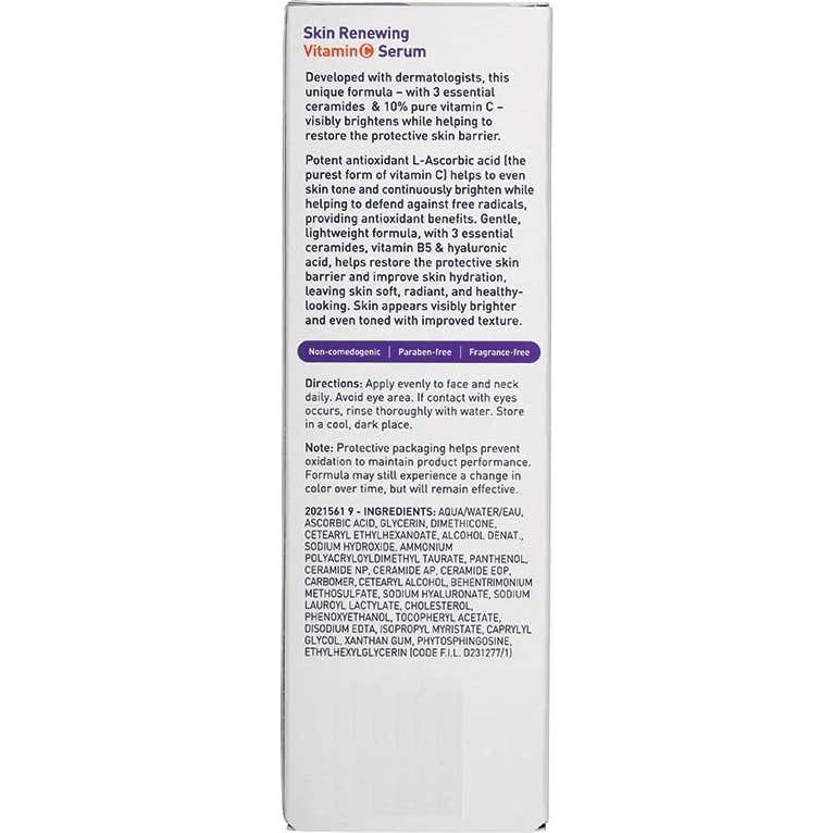 CeraVe Sérum Renovador de Pele com Vitamina C é um produto desenvolvido em colaboração com dermatologistas, projetado para abordar os primeiros sinais da idade. Este sérum contém 10% de vitamina C pura, um potente antioxidante, junto com três ceramidas essenciais que são semelhantes às presentes na pele e tecnologia MVE que garante uma liberação prolongada de seus ativos.