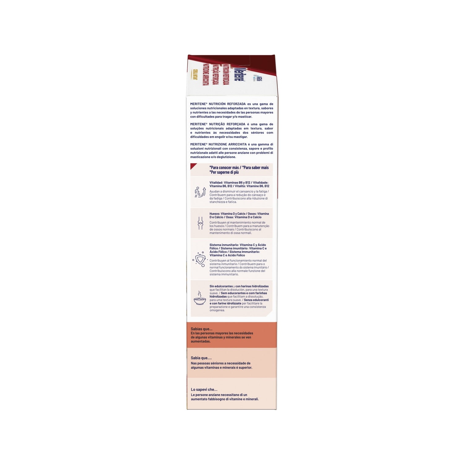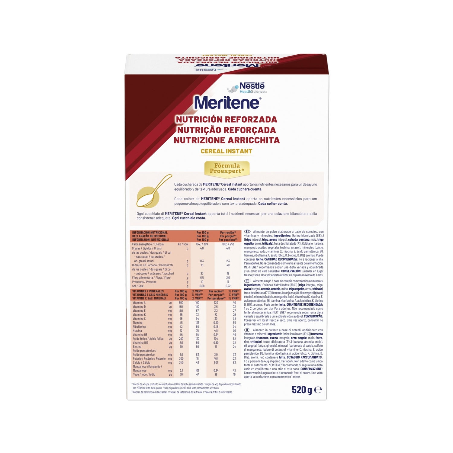 Nestlé Meritene Nutrição Reforçada Cereal Instantâneo Multifrutos 600g é um creme de cereais rico e fácil de comer que proporciona vitalidade graças ao seu conteúdo em vitaminas e ferro. Contém também vitamina D e cálcio, para a manutenção da saúde muscular e óssea.