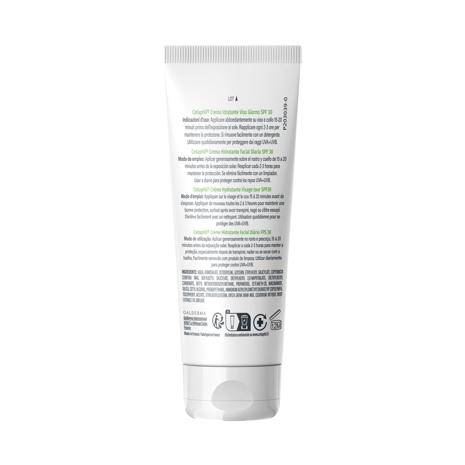 Cetaphil Creme Hidratante Facial Diária SPF30 50ml é um creme leve para a pele do rosto que hidrata ao mesmo tempo que oferece proteção solar SPF30.