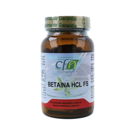 Cfn Betaina Hcl Fs 60caps é um complemento alimentar à base de betaina, cloridrato e pepsina. Contribui para aliviar a azia, assim como para combater a falta de ácido estomacal. Contém 60 cápsulas.