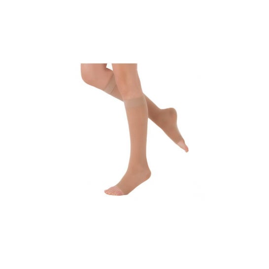 Ch/Dynaven2 Trans Po Beig Cl M L da SIGVARIS é uma meia de compressão terapêutica projetada para a prevenção e tratamento de distúrbios venosos leves e moderados nas pernas. Sua principal função é aliviar sintomas associados à insuficiência venosa, como inchaço e peso, oferecendo uma solução confortável e discreta para o cuidado diário.